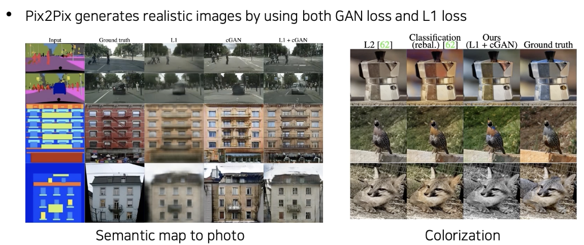 L1 + Gan 실제 output과 비슷하면서 realistic 한 이미지
