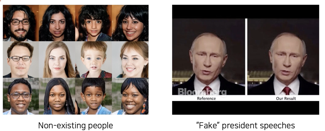 목소리, video 등으로 fake 연설까지도 생성 가능 위험하다.