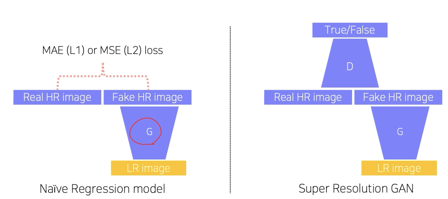 하지만 GAN은 adversarial loss를 사용하여 real data와 구분을 못하게 하는 것이 목적이므로 (이 경우 loss가 낮다.)