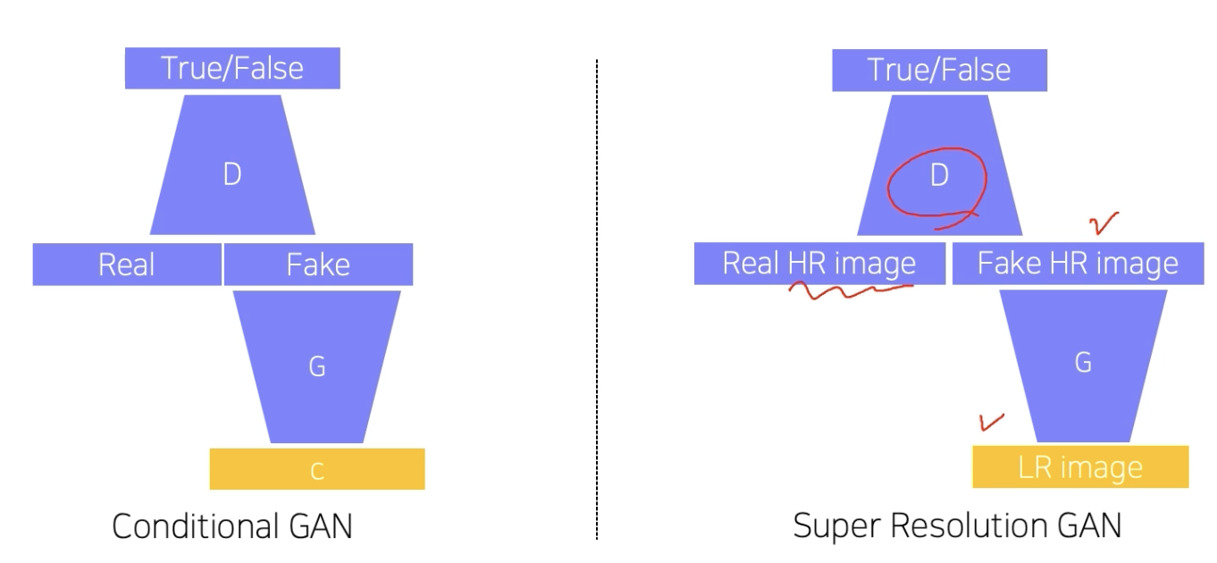 - 저해상도 $\rightarrow$ 고해상도 : super resolution
