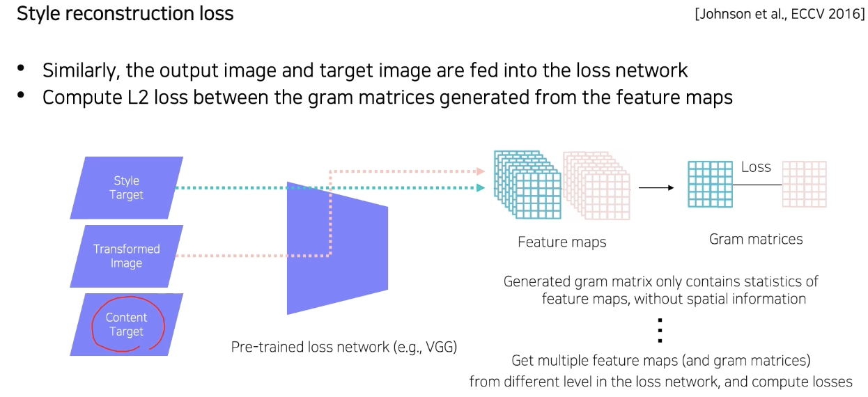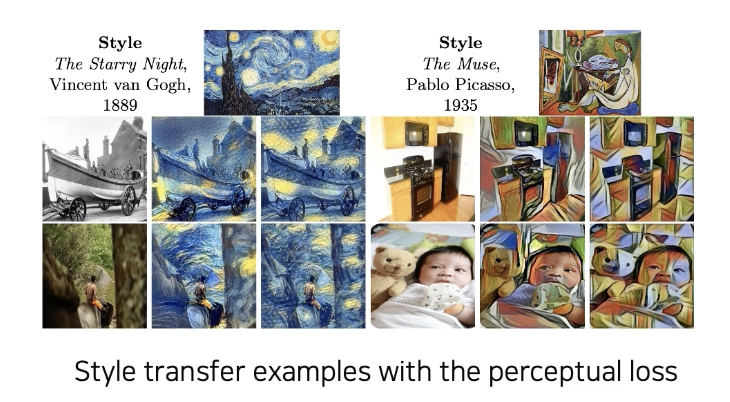 Super resolution의 경우 style은 쓰지 않고 feature reconstruction loss만 사용해서 perceptron loss를 사용하기도 한다.