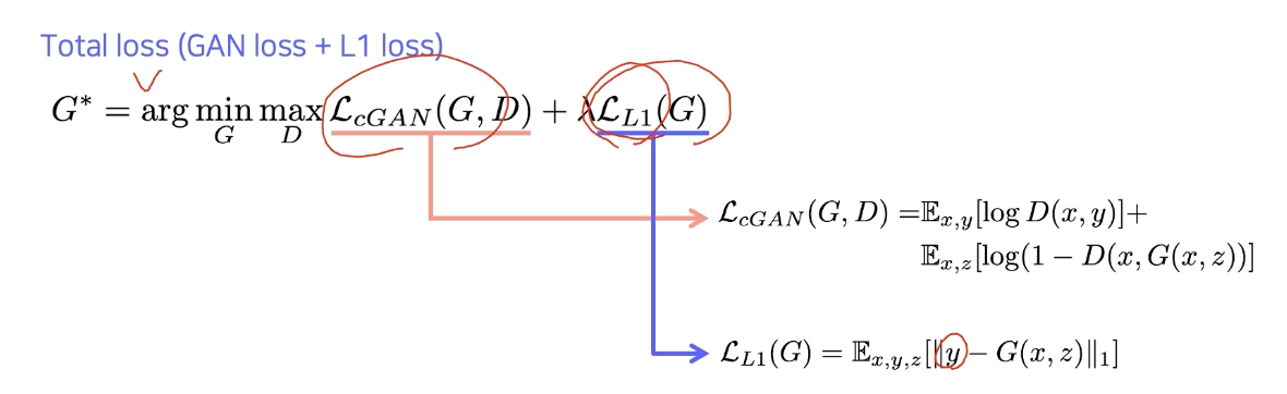 여기서 GAN loss 가 기존 GAN loss와 약간 다른건 z만이 아니라 x도 입력으로 들어갔다.