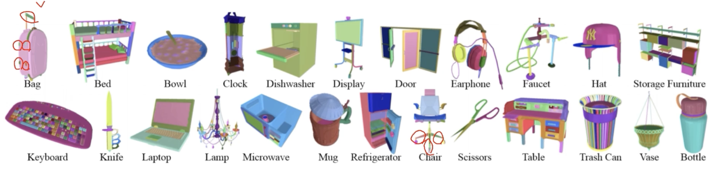 약 2만 6천개 3D model $\rightarrow$ 파트들의 57만 여개 instance