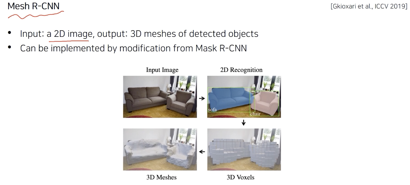 이미지 --> 2D detection --> 3D mesh or voxels reconstruction