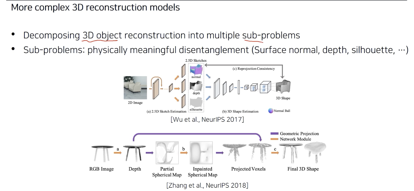 물리적 의미있는 sub problem 부터 3D 생성 방법들이었다.