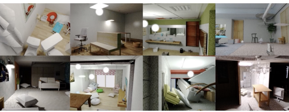 indoor에서 난잡하게 가구가 랜덤하게 배치되어있다.