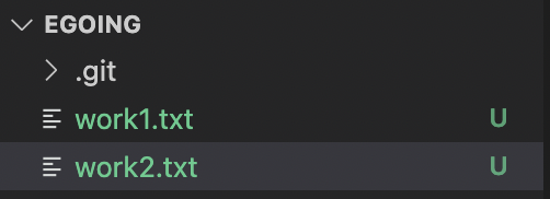 - U: git이 아직 추적하고 있지 않는 새로 생성된 untracked file, 저장 요구