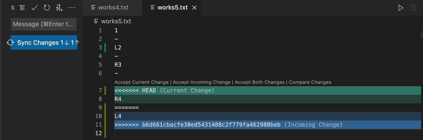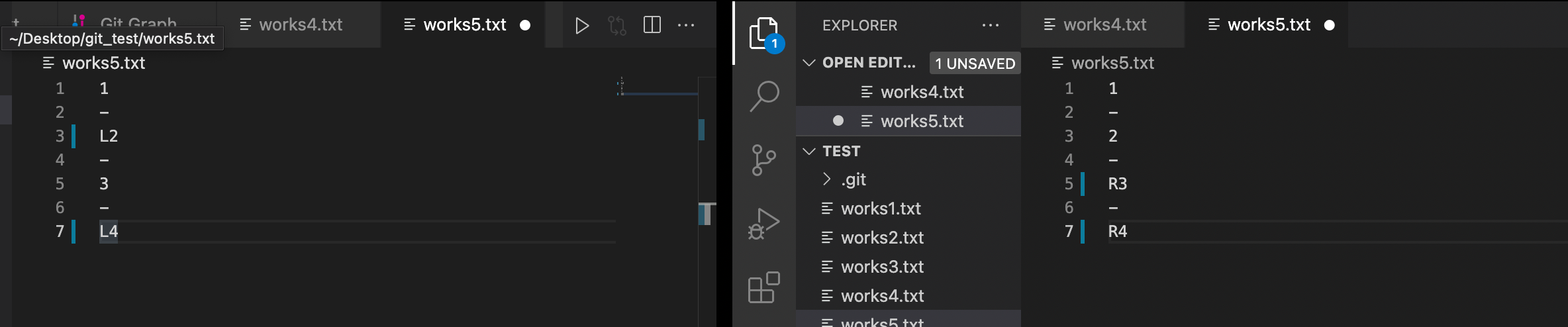 왼쪽의 파일을 각각 다음과 같이 수정한 후 push 해보자.