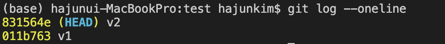 git log --oneline 으로 현재 HEAD 가 가리키는 version을 알 수 있다.