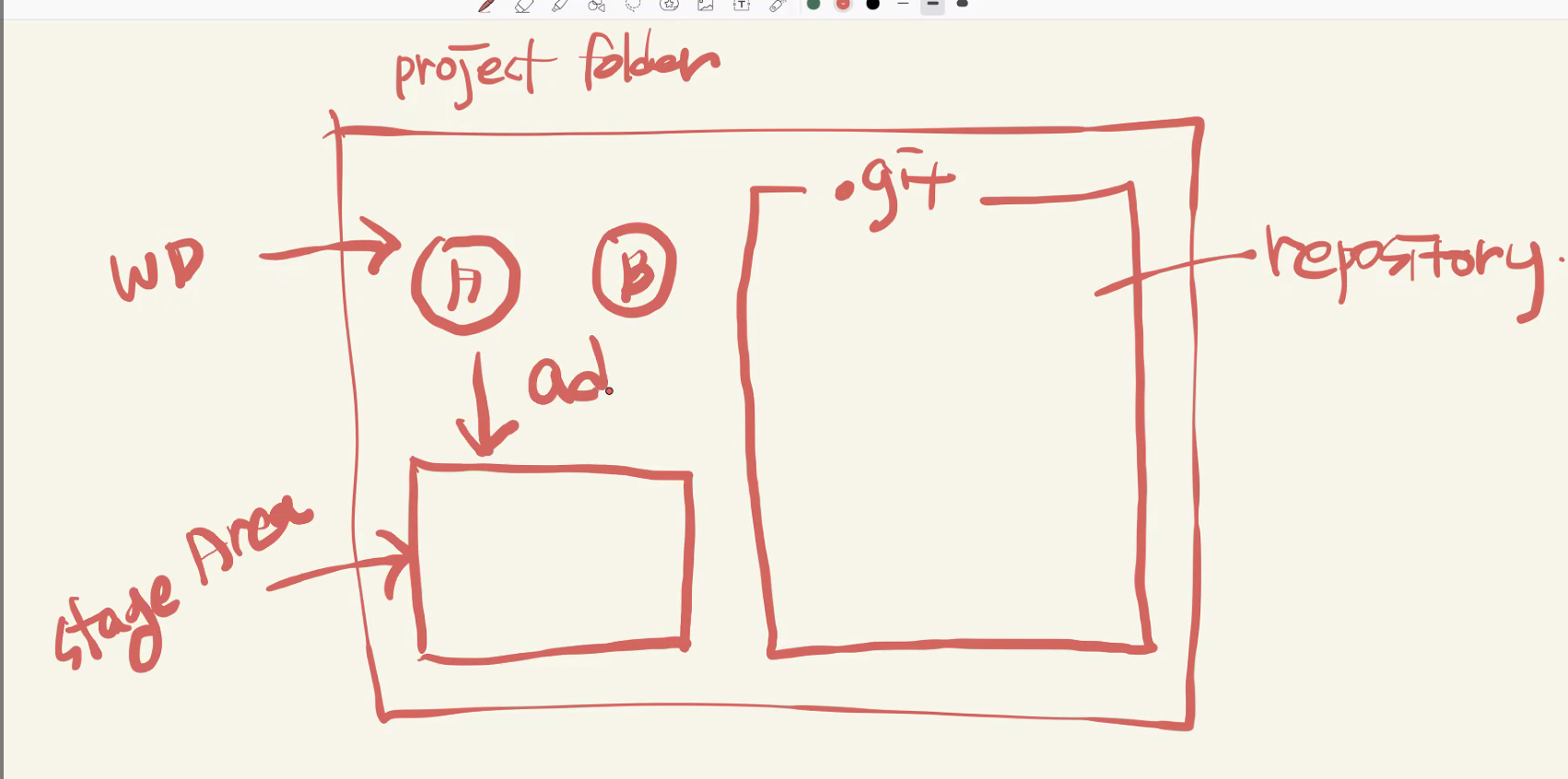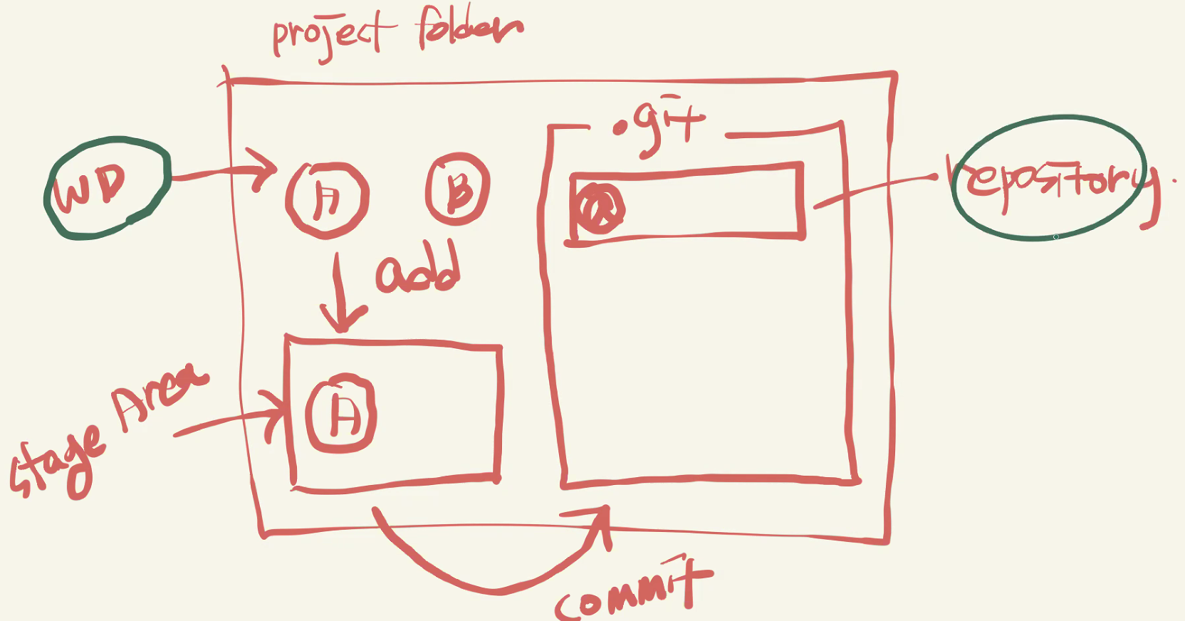 $\rightarrow$ 즉 한마디로 다음의 과정은 프로젝트 폴더에 파일을 생성한 후, 그중 원하는 파일만 선별적으로 골라서 그 순간의 상태를 저장하고, 기록함으로써 버전 관리를 할 수 있게 된다.