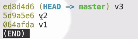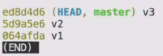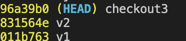 다음과 같이 HEAD 가 master 를 안가리키고 v3를 같이 직접 가리키고 있는 것을 볼 수 있다.