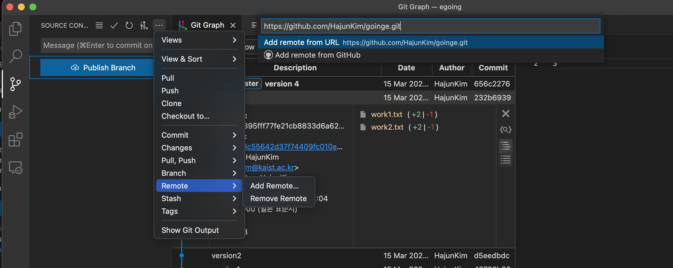 2) vscode 깃 사용법