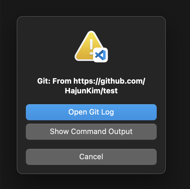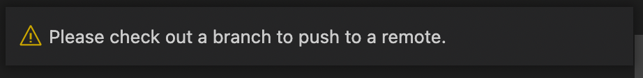 단, push하면 다음과 같은 경고가 checkout을 먼저 하라고 경고해주고 진행이 안된다.