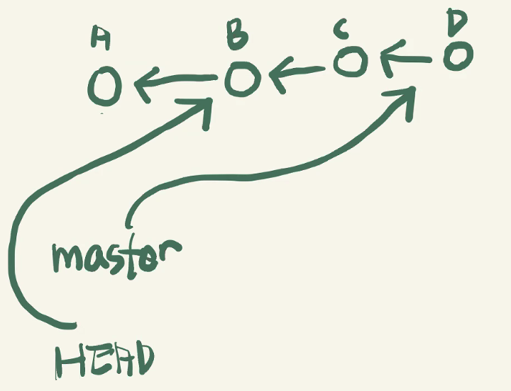 HEAD 가 master를 가리키고 있을 때는 master 가 같이 움직이지만 그렇지 않을 때는 HEAD 만 움직인다!)