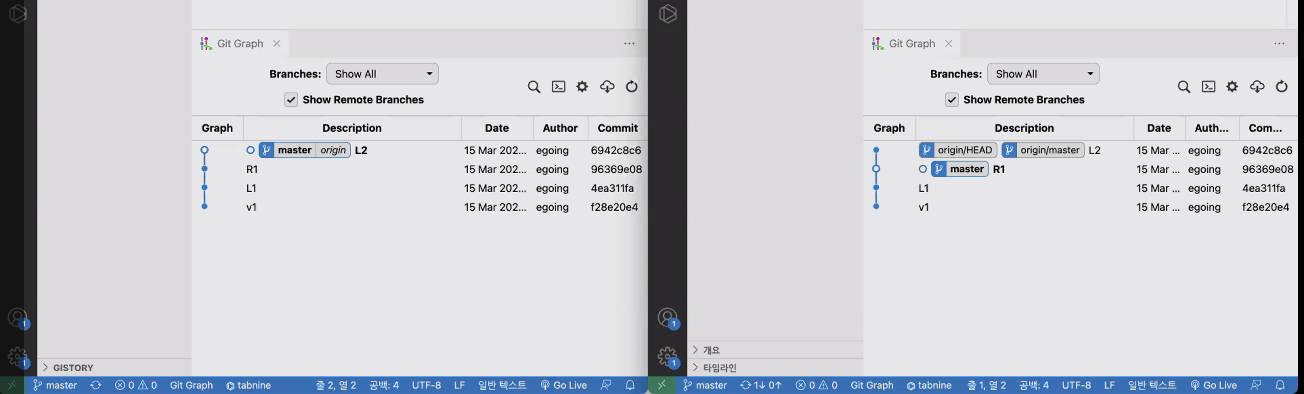 git checkout master (오른쪽 그림)