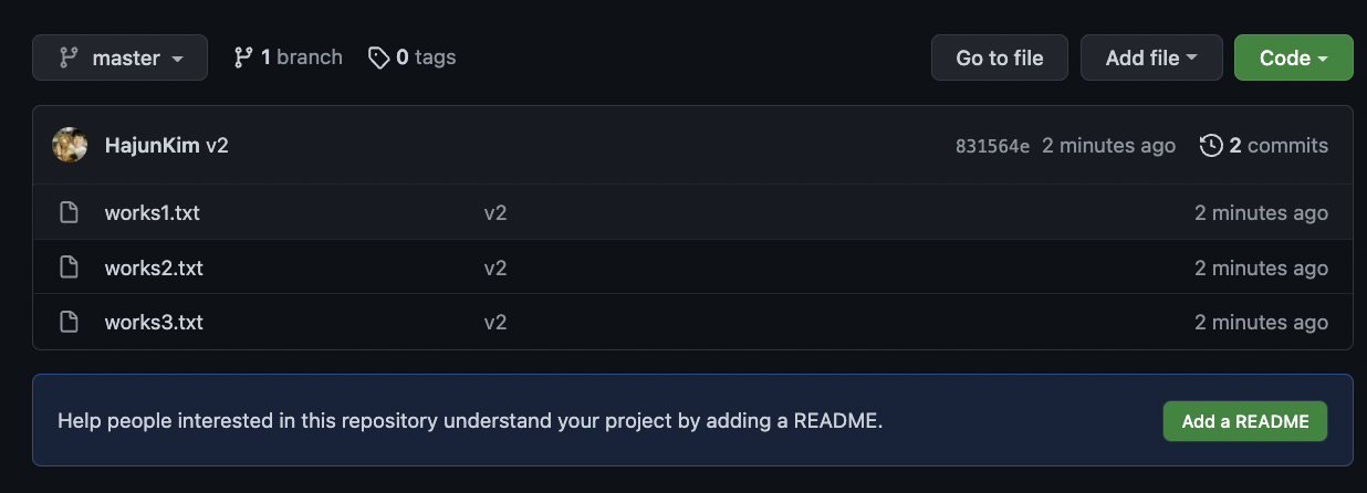 실제로 협업 과정에서는 내 로컬이 아닌, 다른 사람의 로컬에서도 원격 repository를 복제하고 파일을 추가할 것이다.