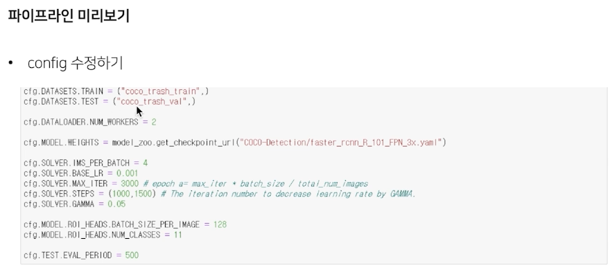 LR, Interation, ROI class 수, num_workers 등 mmDetection과 유사