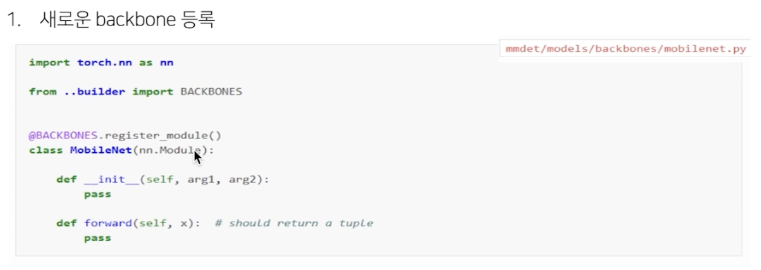 mmdetection은 pipeline이 짜여져 있기 때문에 수정이 좀 어렵고, backbone loss 추가 등도 조금 의식을 하고 수행해야 한다.