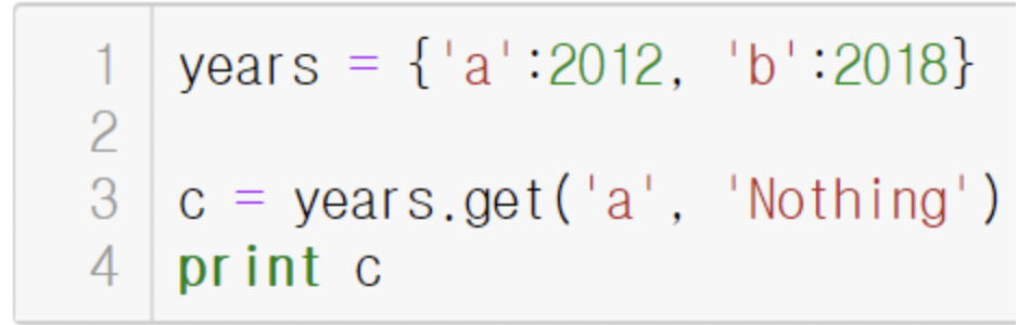 dictionary에서 'a'를 key 로 하는 value 를 찾아 c에 저장, 없으면 두번째 파라미터인 Nothing 저장