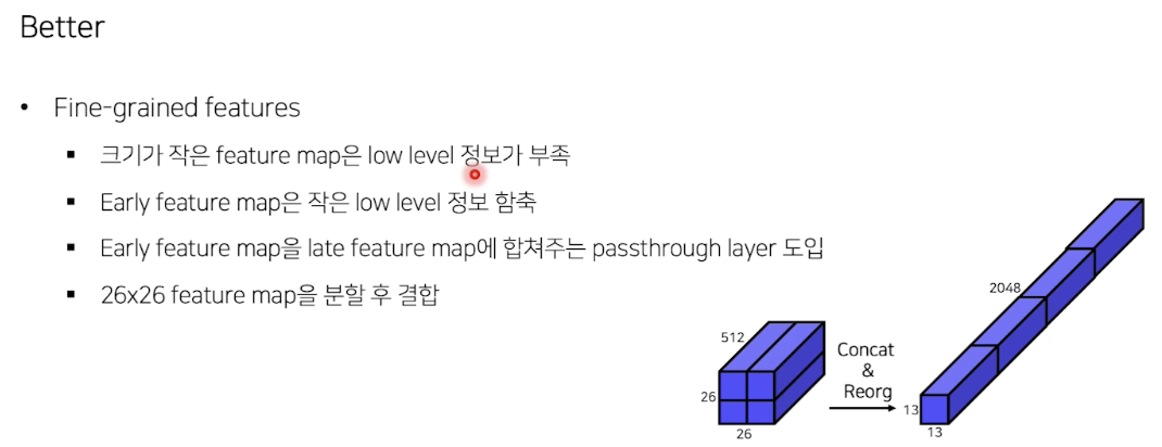 작은 low level의 정보를 함축한, 즉 fine-grained feature를 최종 layer 에 추가