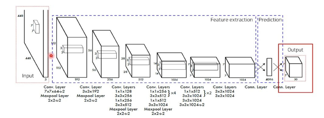 - 입력 이미지 S X S 그리드 영역으로 나누기 (S=7 in this paper)