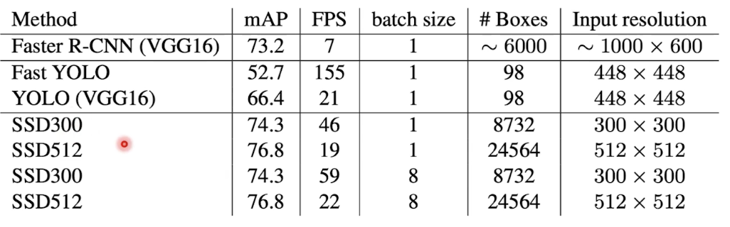 - Yolo 는 fully conneceted 를 사용했기에 속도가 느렸으나, SSD 는 fully conneceted layer가 사라졌다.