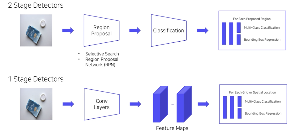 $\rightarrow$ 속도가 매우 느려서, real time 으로 활용하기 위한 방법론 one stage