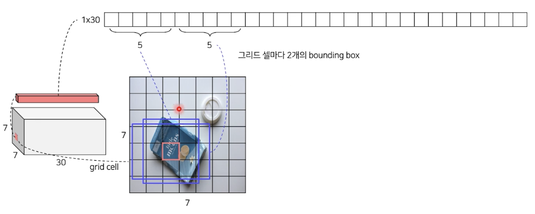 - 하나의 그리드가 7 X 7 의 영역의 한 부분을 담당