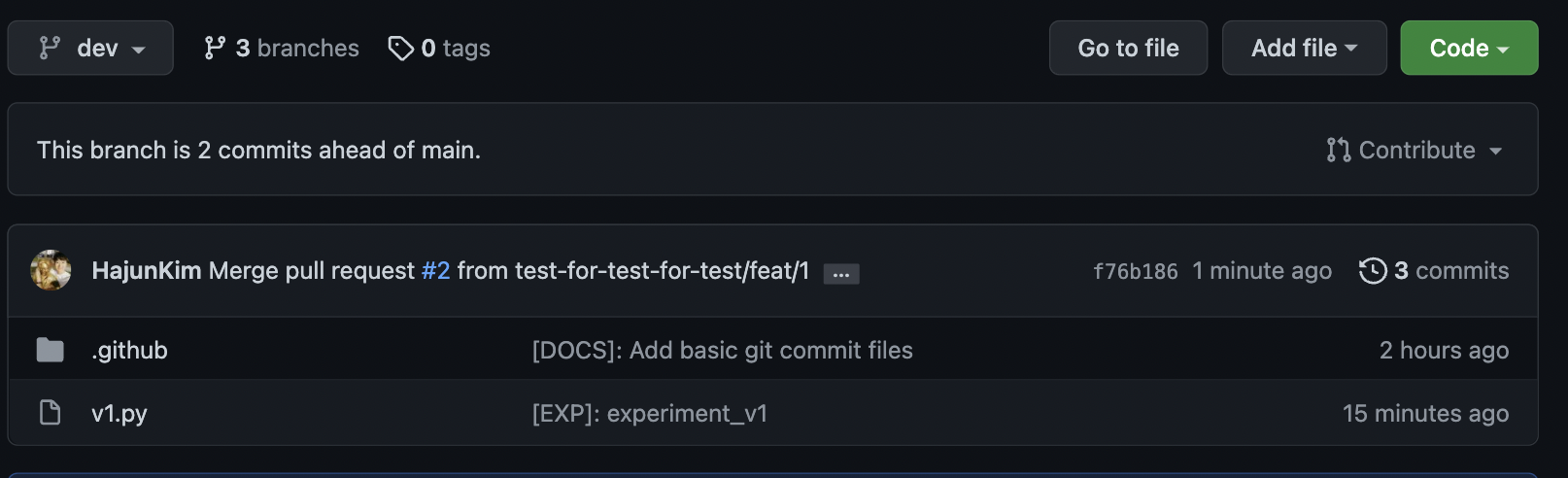 2d15ef3 (HEAD -> dev, origin/dev) Merge pull request #4 from test-for-test-for-test/feat/2