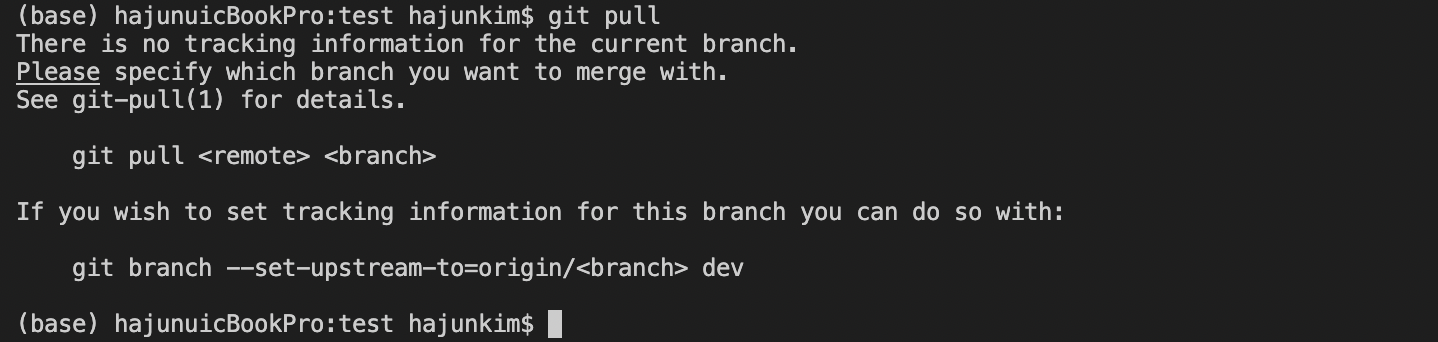(base) hajunuicBookPro:test hajunkim$ git pull origin dev