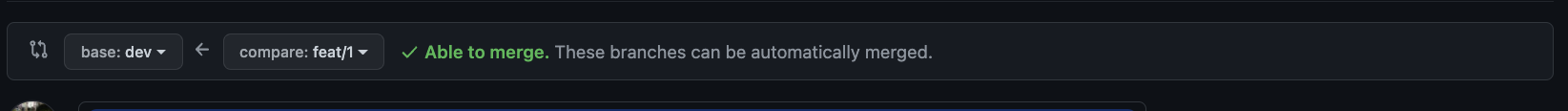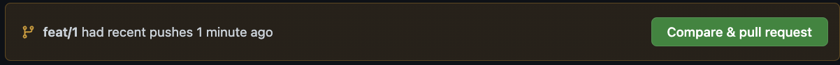 이로 인해 해당 push 작업을 마친 후 github 페이지에 들어가면 자동으로 feat/1 | origin branch의 update 내용을 다음의 dev | origin 은 main | origin 에도 반영(merge)을 할 것인지 확인한다.