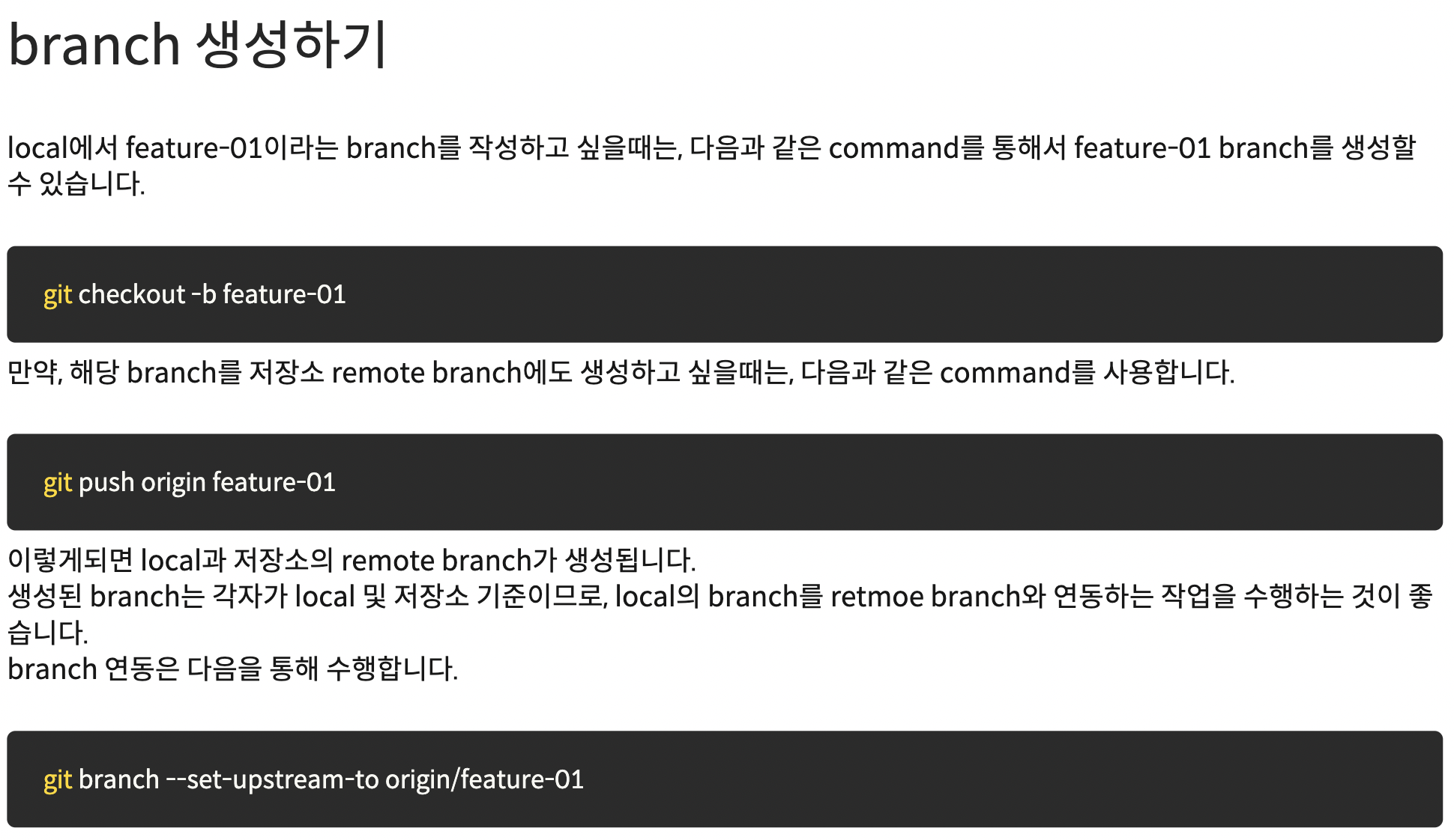 처음 remote branch를 생성할 때는 아래의 방법을 따라야 한다고 한다.