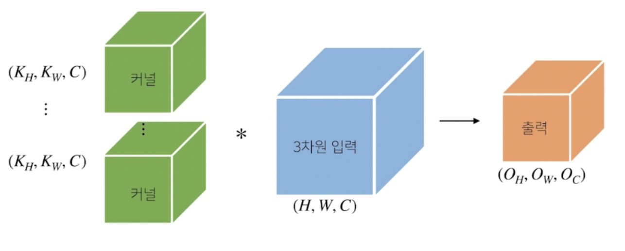 실제로 영상 데이터는 3차원 이상인 경우가 많다. R,G,B 만 추가되어도 3차원 입력 데이터를 다루게 된다.