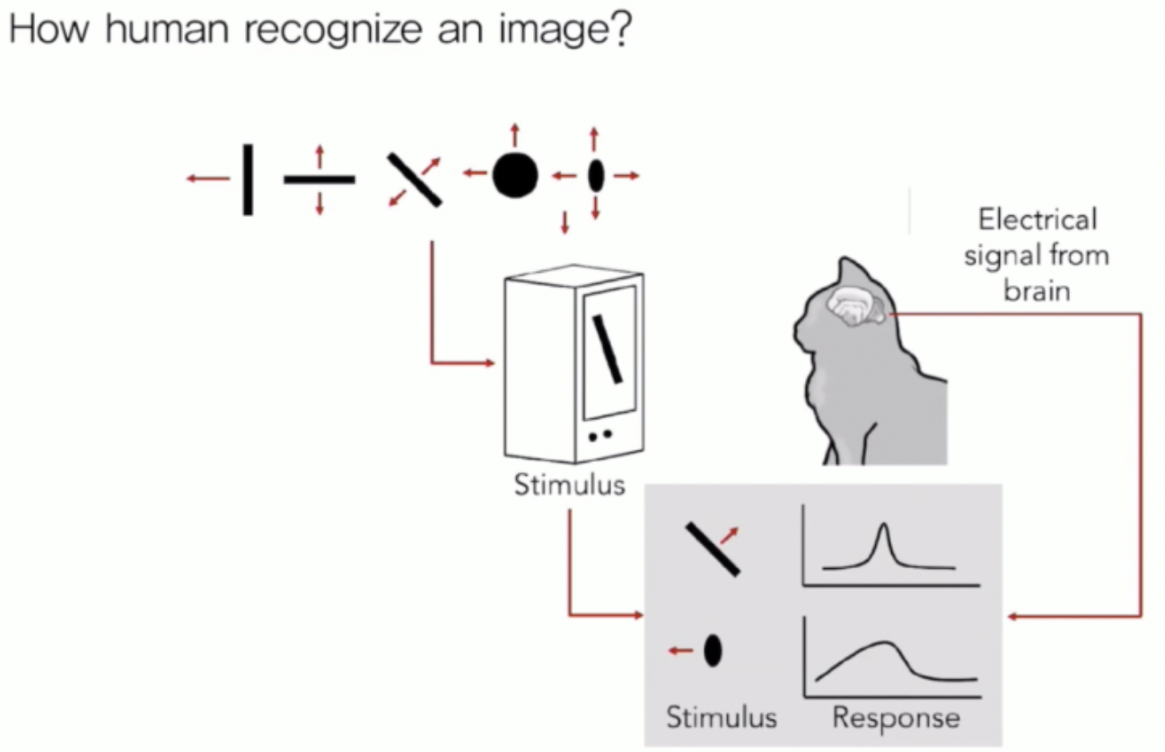 이걸 기반으로 사람들이 복잡한 사진을 봤을 때 한번에 보는 것이 아니라 작은 부위별로 보는 것이 아닐까 라는 추론을 하게 되었다. 즉 간단한 (선의 두께 등) 것들을 담당하는 뉴런들이 따로 있다라는 결론이다.