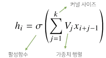 입력벡터 x 를 모두 이용하는 것이 아니라, kernel 사이즈에 대응되는 만큼 추출을 한다.