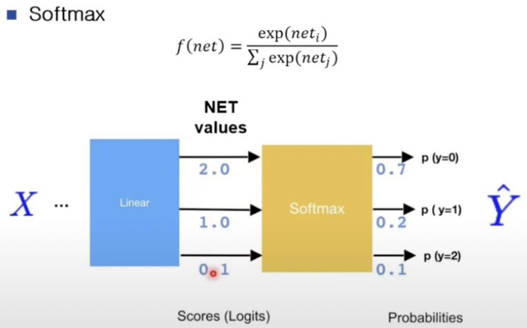 출력값을 통과시키면 확률벡터를 얻을 수 있다.
