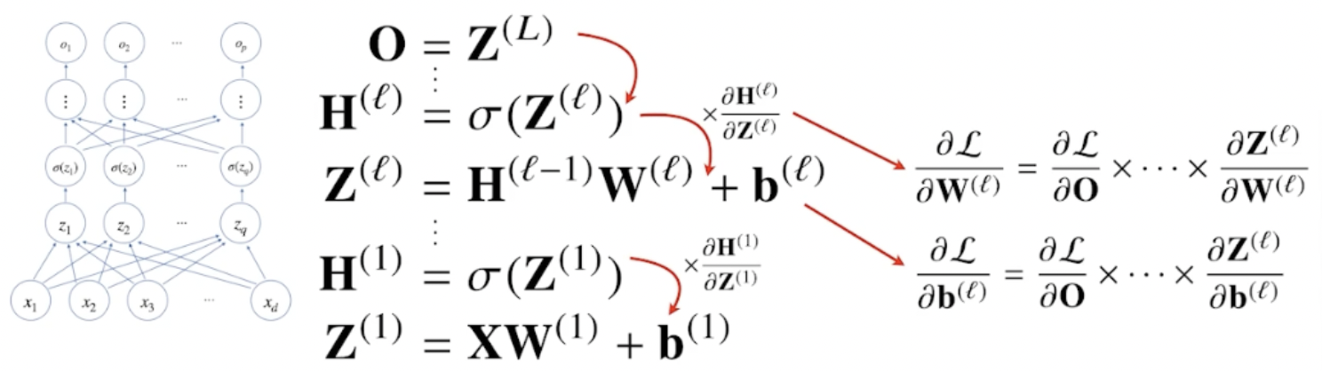 저층의 gradient vector를 계산할 때 위층의 gradient vector 가 필요하다.