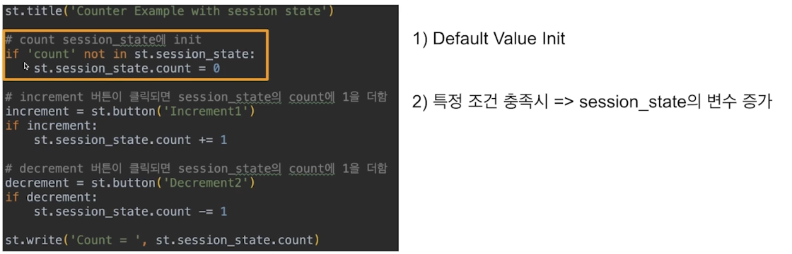 session state 사용법은 다음과 같다.
