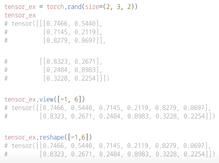 view: reshape과 동일한 기능 tensor의 shape 변환