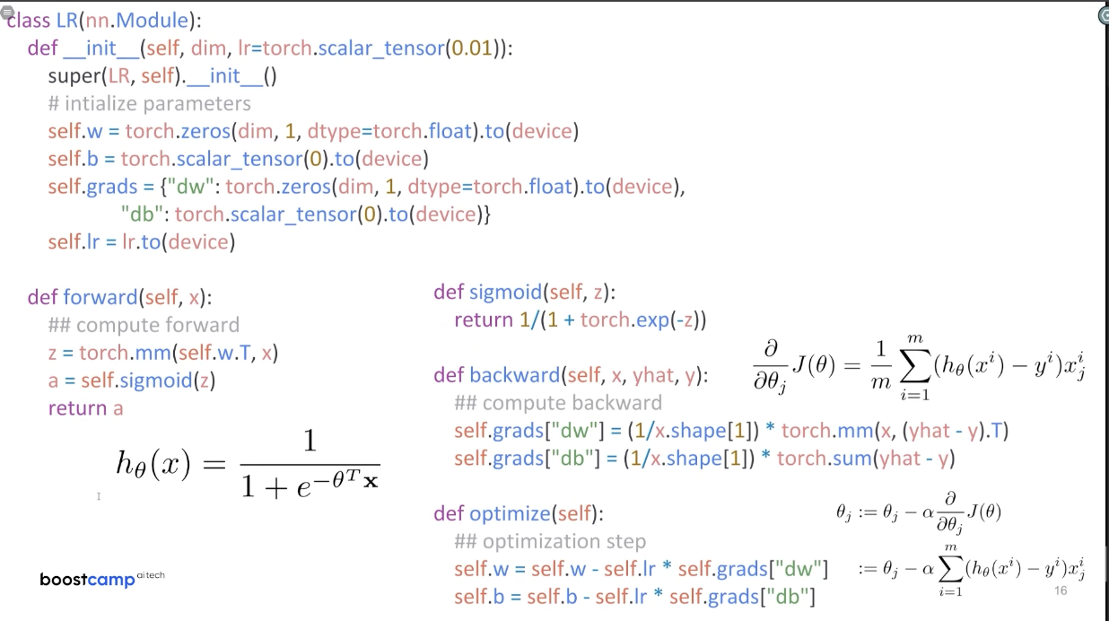 backward 함수를 보면 직접 편미분 한 수식이 적혀져 있는 것을 알 수 있다.