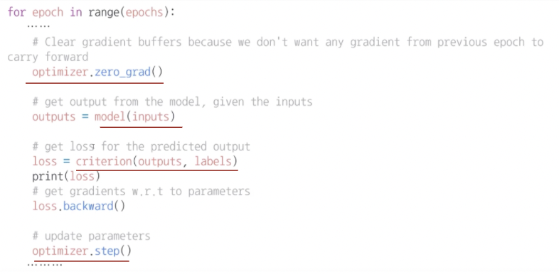 optimizer = torch.optim.SGD(model.parameters(), lr= learningRate)