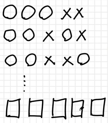 하지만 5번의 시행에서 사건 A가 3번 일어날 경우가 한가지만 있는 것이 아니다.