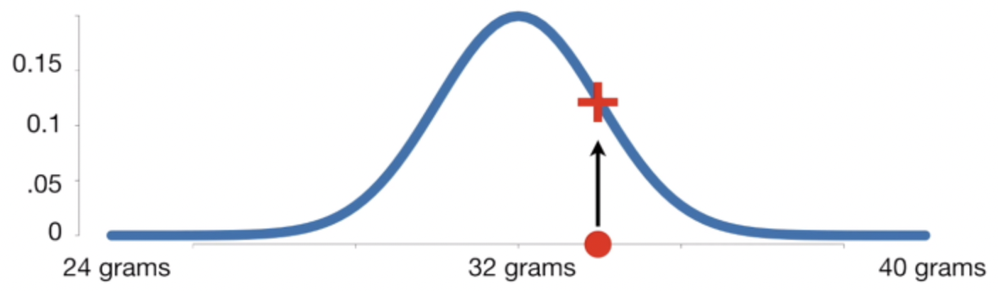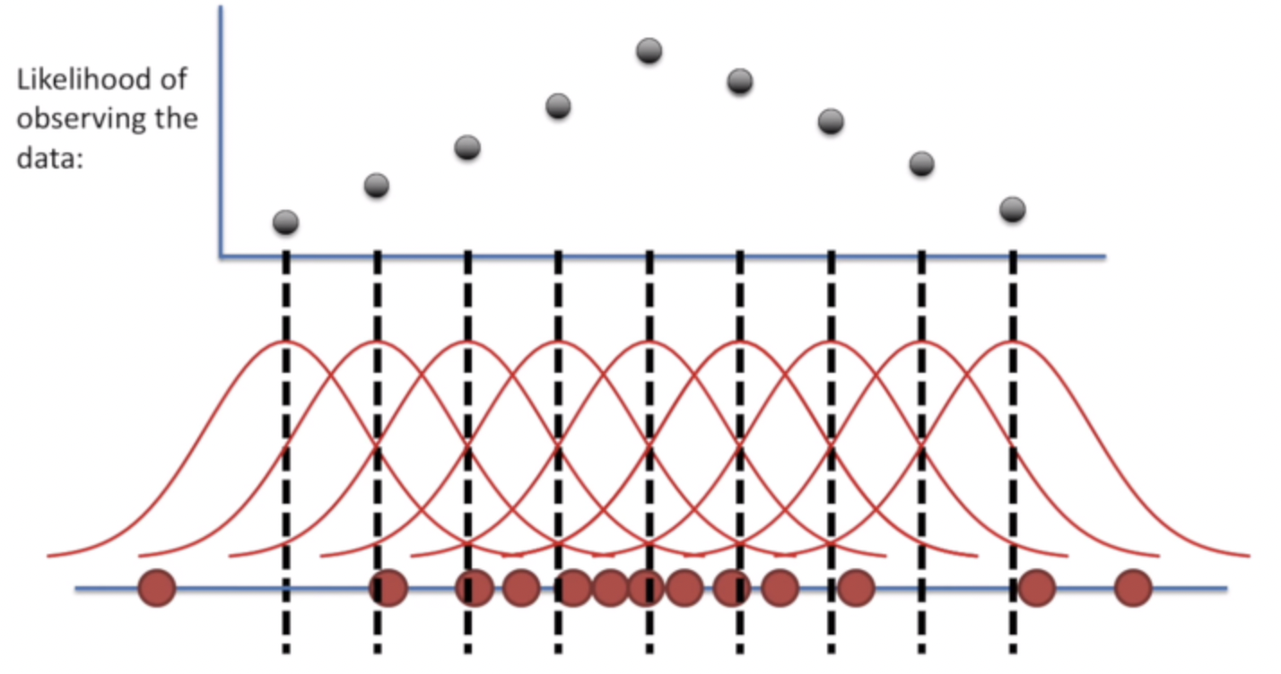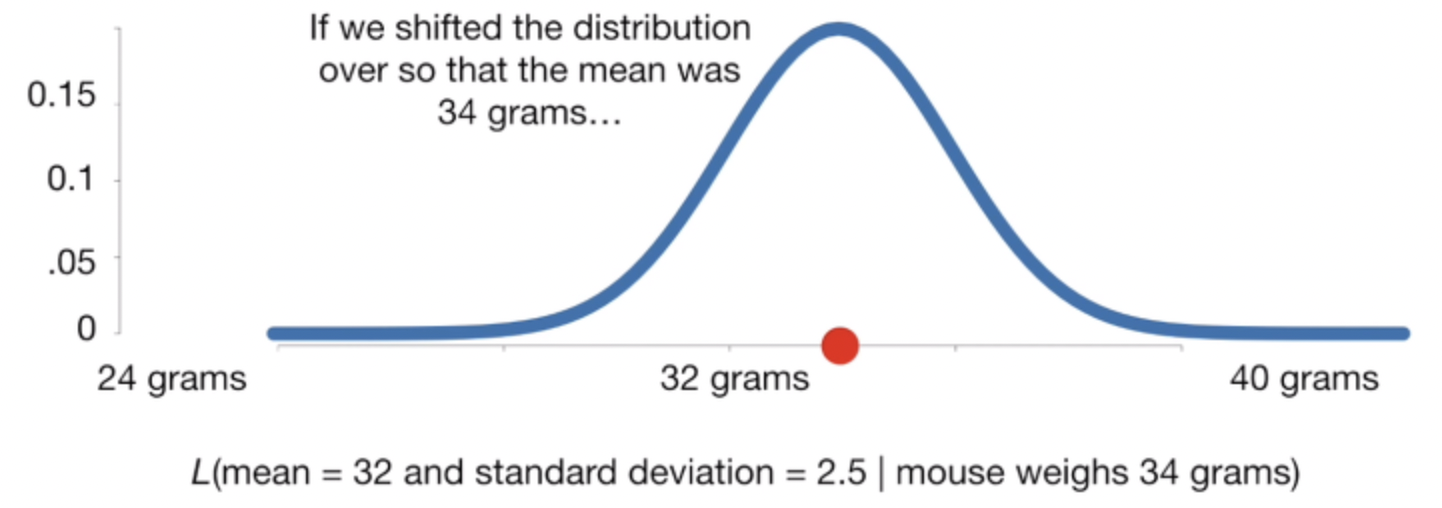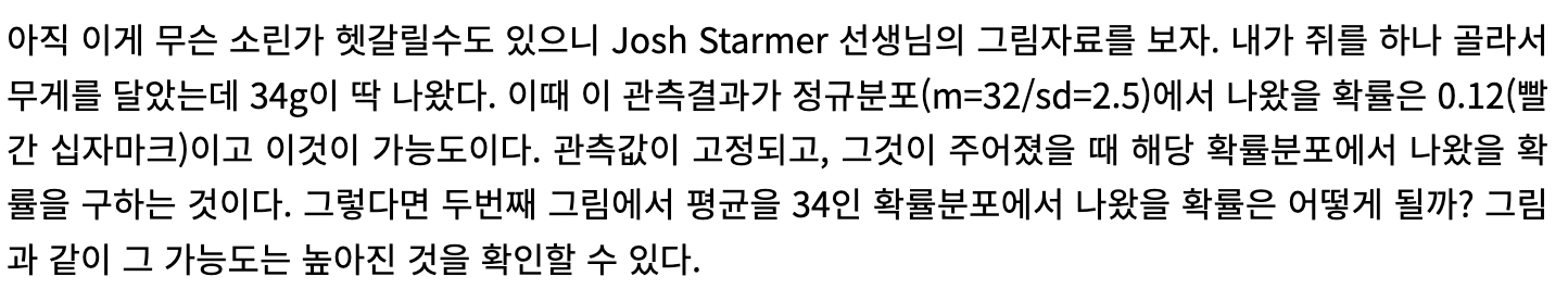 즉, likelihood 는 아래 이미지 같이 파라미터 마다 관측 값이 등장할 확률이 다르다.