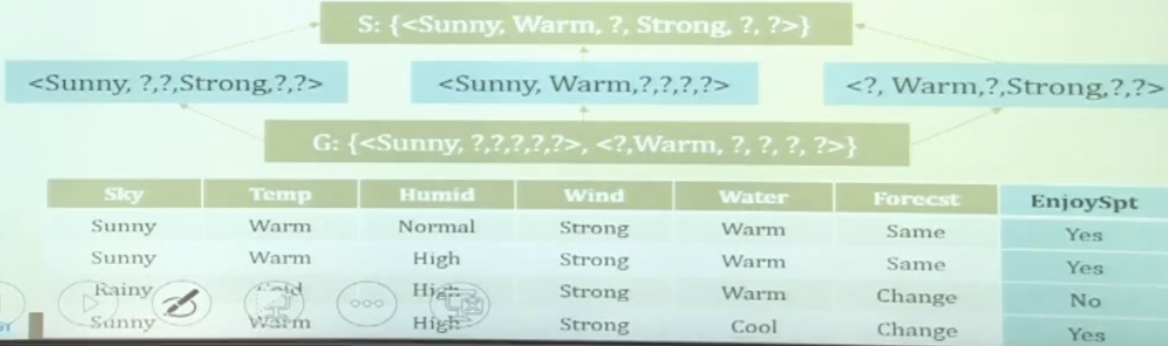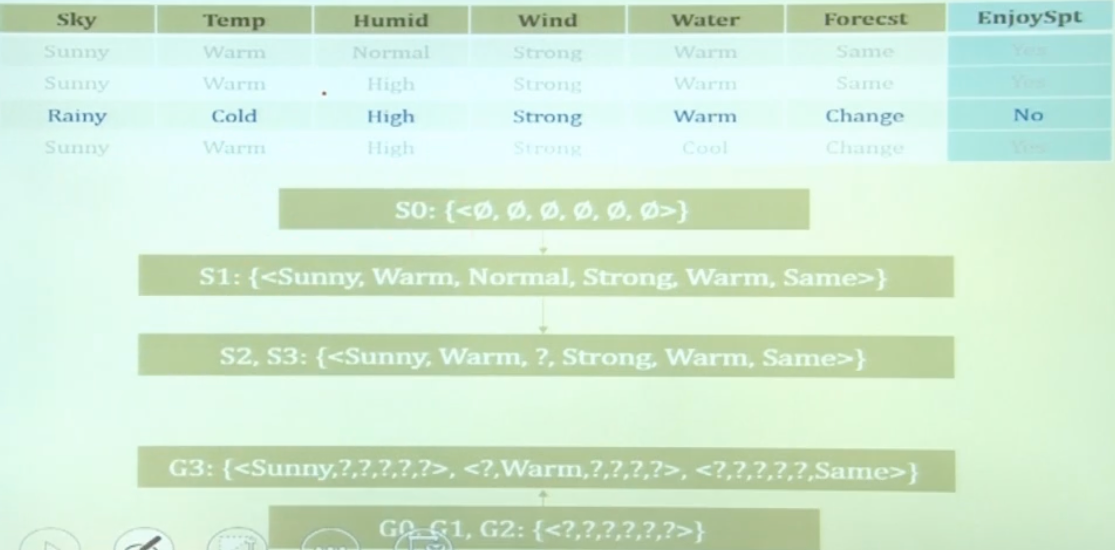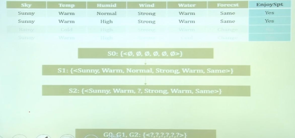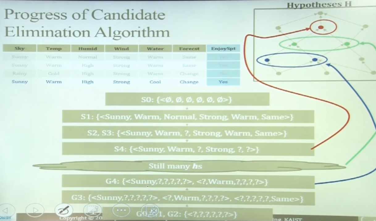 마지막 케이스를 통해 업데이트를 마쳤다. 그러나 여전히 G 과 S 사이에 여러 가설이 존재할 수 있다. 이 중 하나가 True 값일것이라 기대하며 learning 하는 것이 rule based 방법이다.
