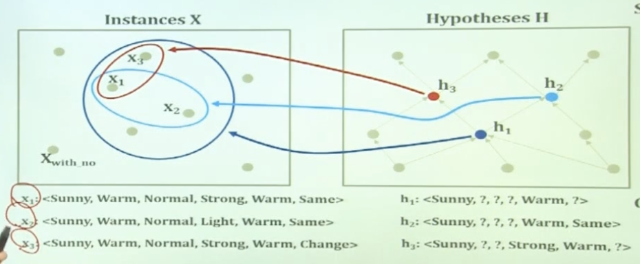 위 그림을 살펴보자. 위 그림의 오른 쪽 Hypothesis H $h_i$ 에 해당하는 Instance X $x_i$ 를 확인해보자.