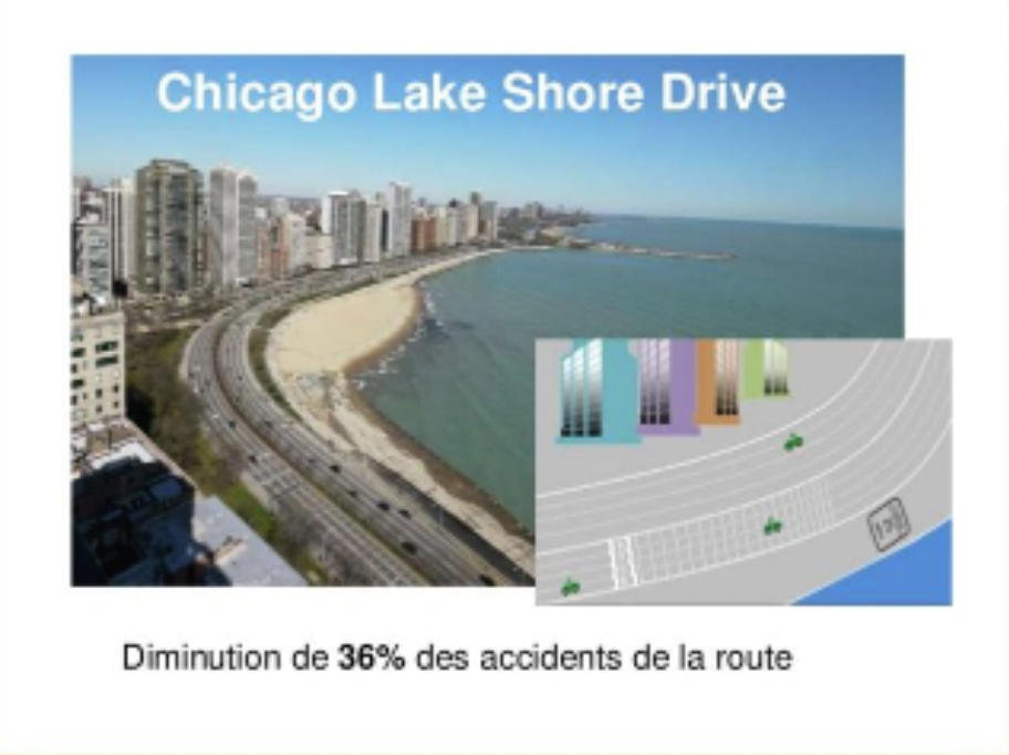 시카고에서는 사고를 줄이기 위해 커브 구간 진입시 도로에 가로 선을 긋 되, 점차적으로 그 간격을 줄여 그려서 운전자로 하여금 속도가 오르고 있다고 착각하게 만들었다. 이로 인해 사고가 36% 감소했다.