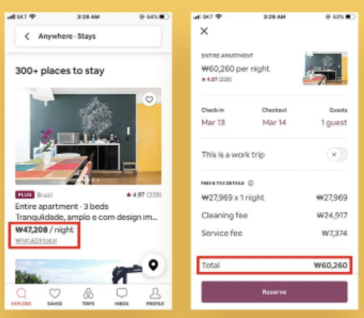 최고가 옆에 standard 가격을 배치하여 가격을 낮게 보이게 하는 것도 그 한 예이다.