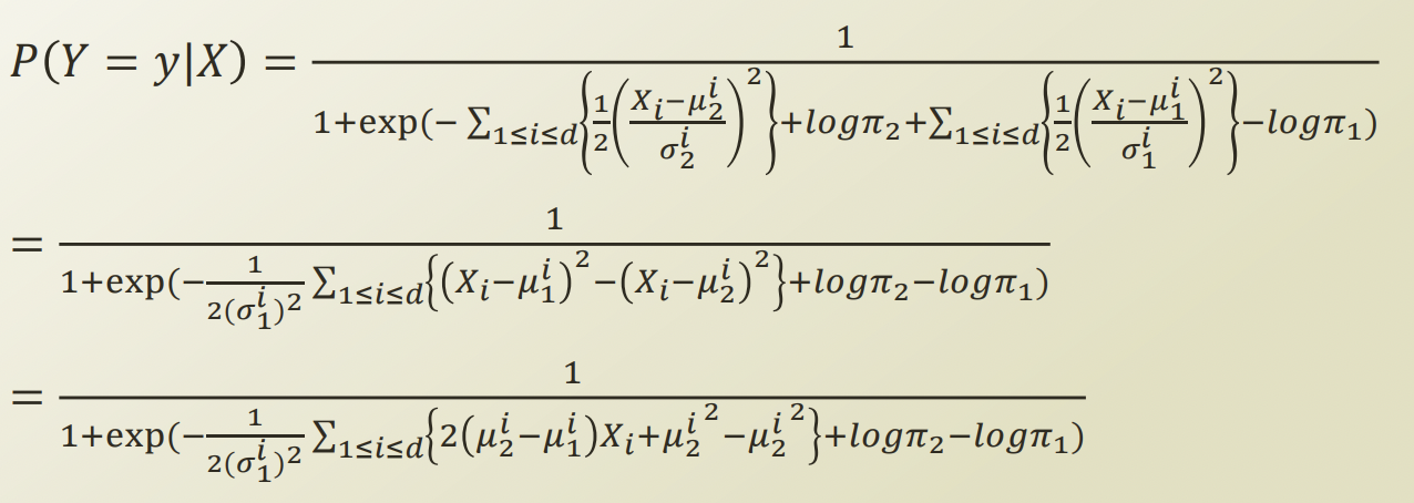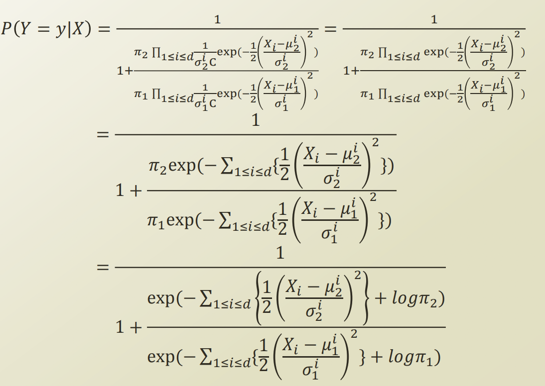 지금 여기서의 목표는 Naive Bayes 에서 Logistic Regression 이 유도가 된 다는 것을 보이고자 하는 것이다.