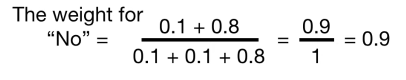 동일한 방법으로 "NO"의 weight를 구하면 아래와 같고,