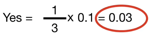 "YES" 는 3번 중 1번 등장했으므로, $\frac{1}{3}$ 이라 할 수 있다.